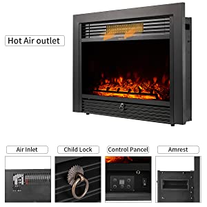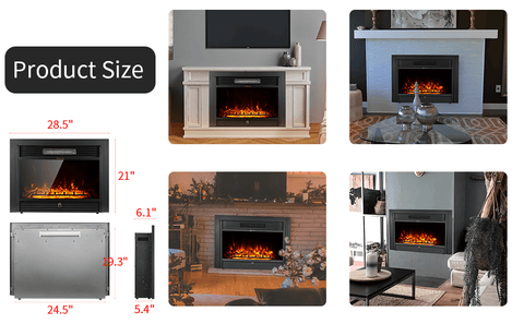 28.5" Electric Fireplace Insert with 3 Color Flames, Fireplace Heater with Remote Control and Timer, 750w-1500W,Classic Style