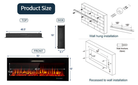 ☀【In-wall/Wall-hung Installation】This electric fireplace is specially created for in-wall recessed mounting. Second choice: is wall-hung mounted. Just plug in a 110V outlet and enjoy. Please contact our customer service team if you have questions about installation, damage, or missing parts.