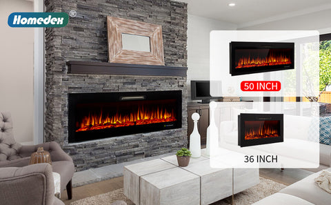50-inch electric fireplace emits a realistic-looking flame that emulates an authentic fire to enhance the cozy atmosphere and contemporary style of your home decoration.
