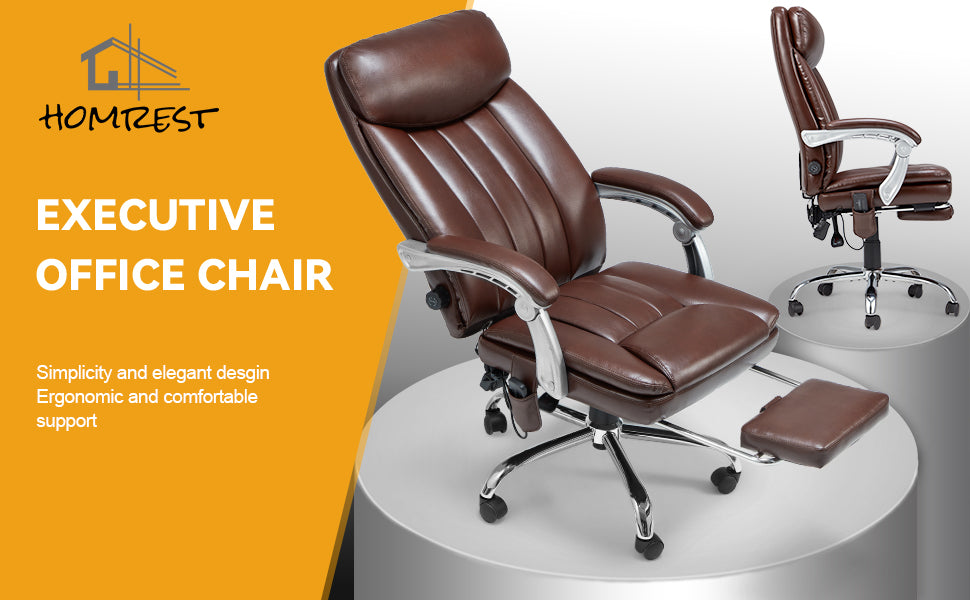 HOMREST Executive Ergonomic Office Chair Adjustable Home Desk Chair, Big and Tall Leather with Massage and Heat (Brown)