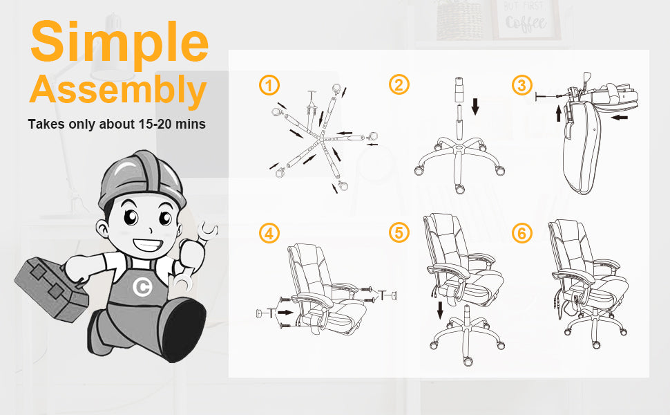 • Assemble & GUARANTEE - The assembly process of the office chair is very convenient, and all materials and guidance are in the packaging. The base is made of metal, and the hydraulic rod through BIFMA certification is sufficient to bear the weight of 300 pounds. If you have any questions, please contact us at any time.