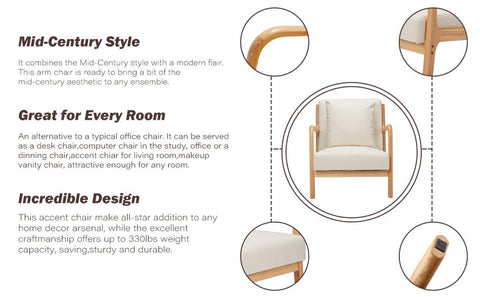 This Homrest modern design cream arm chair has an elegant yet sturdy luxurious look. Mid-century styling makes this accent chair the perfect addition to virtually every space, whether den, home office, great room, living room or library. The large size of the cushions and backrest makes the chair ideal to relax comfortably.