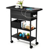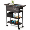 HOMREST Multi-Functional Flip Side Table, 360° Swivel Wheels & Storage Shelf for Living Room/Bedroom, Rustic Brown Wood End Table, Black