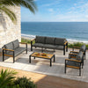 • All-Weather Aluminum Frame: This outdoor furniture set is built with a rust-resistant, all-weather aluminum frame for durability. It features classic, smooth-touch wood armrests, adding a warm and elegant touch to your patio conversation set.