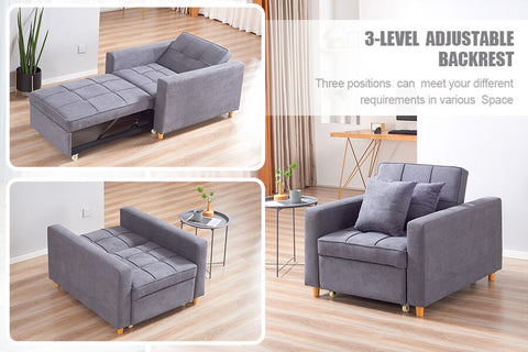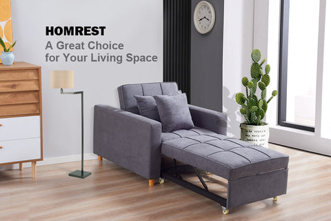 Homrest Sofa Bed 3-in-1 Convertible Chair Multi-Functional Sofa Bed Adjustable Recliner(Grey)