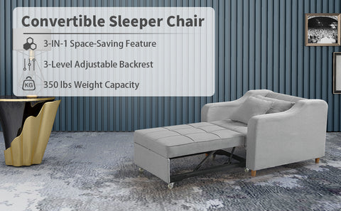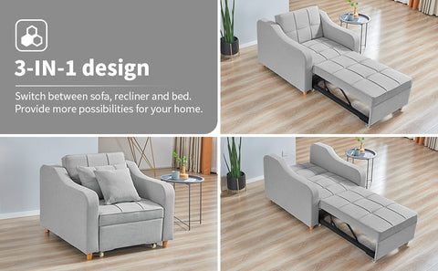 Homrest Upgrade Sofa Bed 3-in-1 Convertible Chair Multi-Functional Sofa Bed Adjustable Recliner(Light Grey)