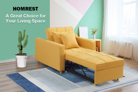 • STURDY FRAME & BREATHABLE FABRIC The convertible chair sleeper bed is made of high-quality steel frame, ensuring best durability in daily use and withstand 330 lbs; The well-padded and high-density new cotton seat cushion with skin-friendly breathable fabric of this sofa ensure a high level of seating comfort, so you can talk about old times until late at night with your loved ones.