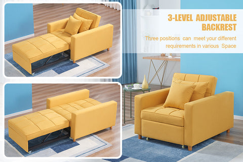 Sofa Bed 3-in-1 Convertible Chair Multi-Functional Adjustable Recliner, Sofa, Bed(Yellow)