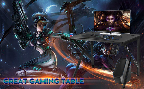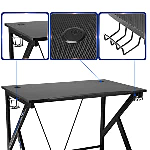 🎮【FEATURES BUILT FOR GAMERS】 – The gamer table comes with a cup holder and a headphone hook. These added features help you have a better gaming experience. It's not only a gaming table, but also a multi-functional workstation. With a modern, elegant, and decent appearance, it provides comfortable gaming and working environment.