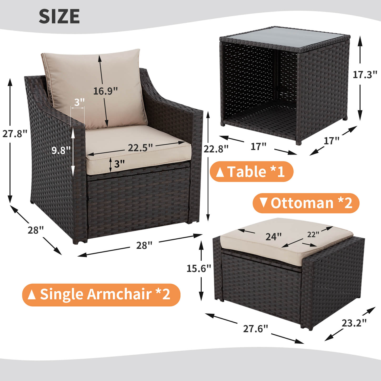 | Ottoman Dimensions | 27.6" x 23.2" x15.6" |