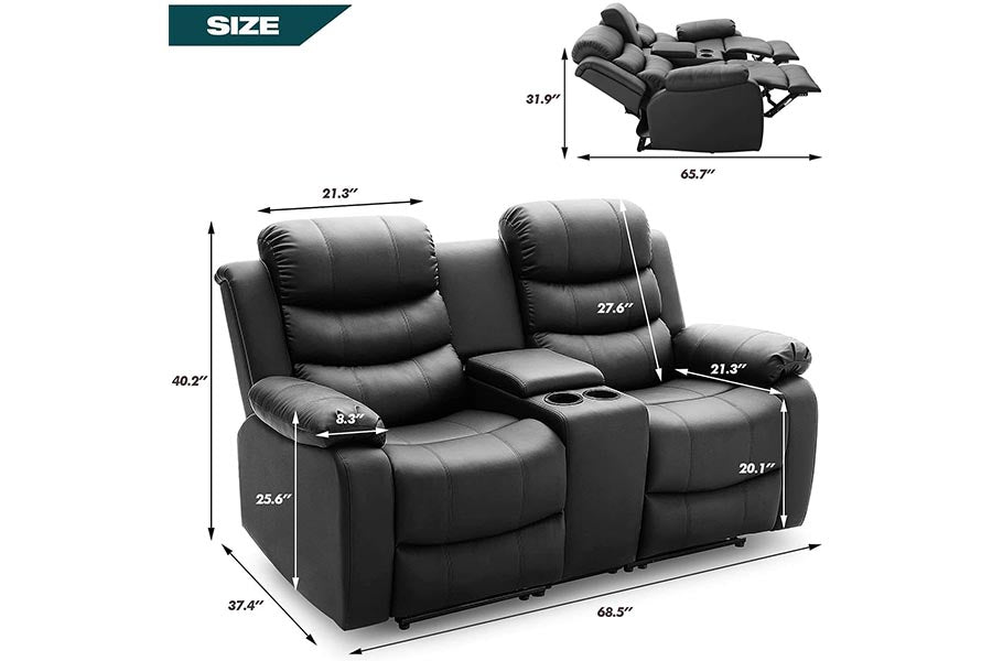 Welcome to enjoy our sofa set, built with exceptional and soft leather for a sense of luxury. Distinctive elements include wraparound padded armrests for a cool twist. Offering hidden storage and cup holders, the comfortably cushioned center console adds a home movie theater element.